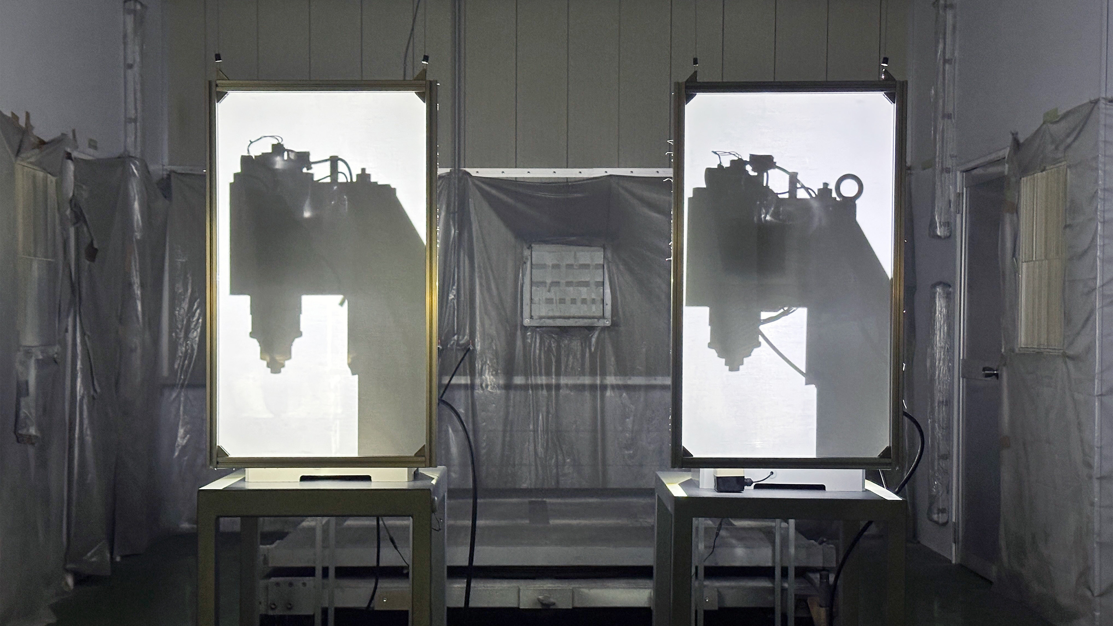 Manustructure is a work that depicts the structure of the production system itself by shining light on machines operating in a factory and casting their shadows onto a support.